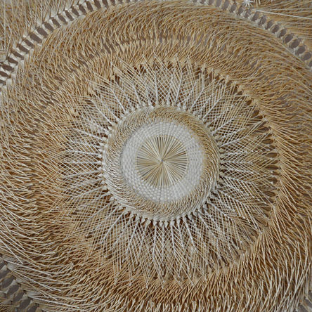 The artist begins by cutting weft threads from cotton, creating a grid of holes (pictured above). The grid is then embroidered, usually with the same colour thread as the material, creating a lace-like texture. These exquisite pieces win awards in regional and national competitions, and are collected by international textile lovers.
